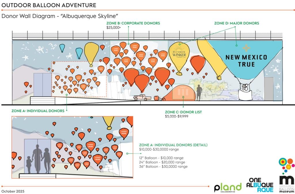 Donor wall acknowledgment starts at $5,000 for your name on the wall and $10,000 and up for your own balloon. DONATE NOW!